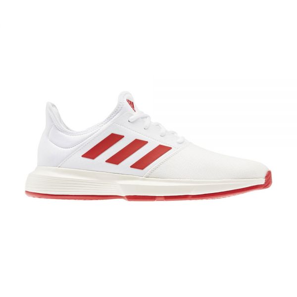 Destaca en la pista con las nuevas zapatillas de pádel ADIDAS Gamecourt en color blanco y rojo, un modelo cómodo y ligero, perfecto para los jugadores de pádel más exigentes.