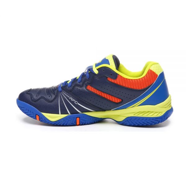 Presentan un atractivo diseño en color azul con detalles naranjas y amarillos, además, destacan por su estilo moderno y deportivo. Las zapatillas perfectas para los jugadores más exigentes.